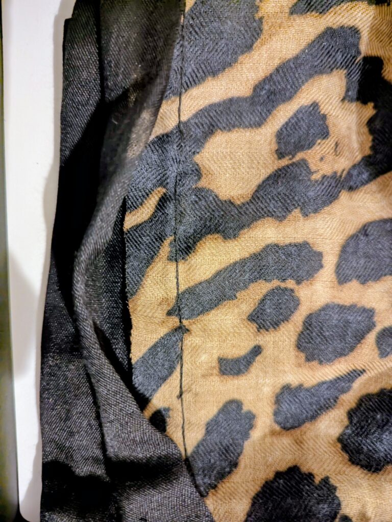 右のような高級感漂う箱入りで、薄手の大判スカーフだった。